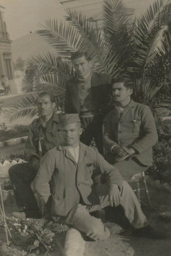 Παρουσιάζεται μαζί με άλλους κρητικούς κληρωτούς στους στρατώνες του μηχανικού, που τα κτίρια τους βρίσκονταν στο Ρουφ, λίγο πιο κάτω από την Ομόνοια και δίπλα στις γραμμές του σιδηροδρόμου. Κατατάχθηκε στον 11ο Λόχο σκαπανέων…