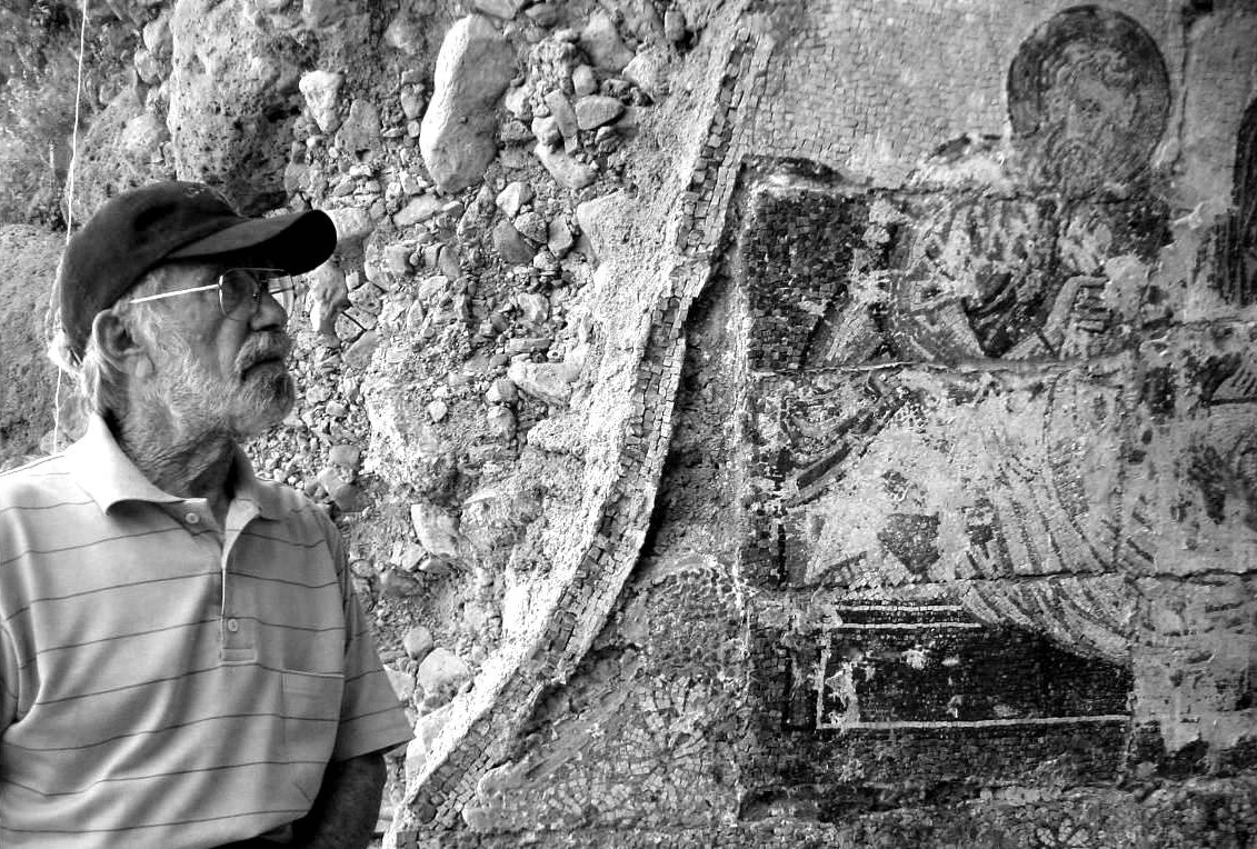 Οι εσωτερικές επιφάνειες των τοίχων του αρκοσολίου καλύπτονται με εντοίχια ψηφιδωτά, έργα του ίδιου, με παραστάσεις του Καλού Ποιμένος και του Επιτάφιου Θρήνου. Η βόρεια πλευρά κοσμείται με παράσταση του Μεγάλου Αντωνίου και ενός Κρητικού με φωτοστέφανο. Στο κέντρο, τέλος, εικονίζεται το Άγιο Πνεύμα ως περιστερά, φερόμενο από δύο χέρια, τα χέρια του Δημιουργού. Γύρω από την παράσταση διατηρείται κυκλικά το έμμετρο κείμενο: